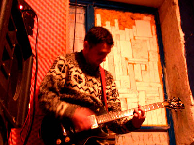 Cris. Playing guitar in SilosSmallRoom, near the door.